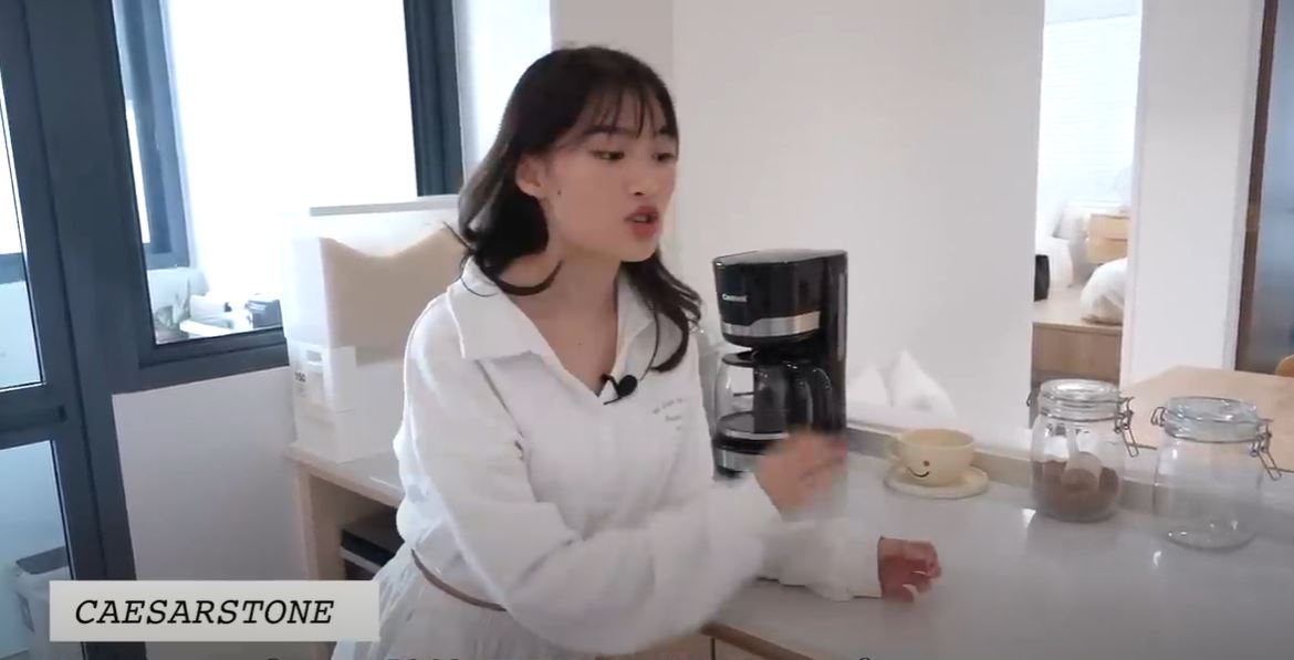 Soh Pei Shi, Singaporean influencer and Youtuber, moved with her family to a new 4 room HDB Built-To-Order (BTO). On why they chose Caesarstone, Pei Shi and her family fell in love with the looks of 5141 Frosty Carrina and the durability of quartz countertop. The gentle light marble veins on an ivory base matches well with their minimalist interior design.