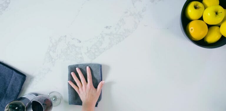 Remove all excess suds, rinsing the surface with warm water and a microfibre cloth or soft, clean towel.