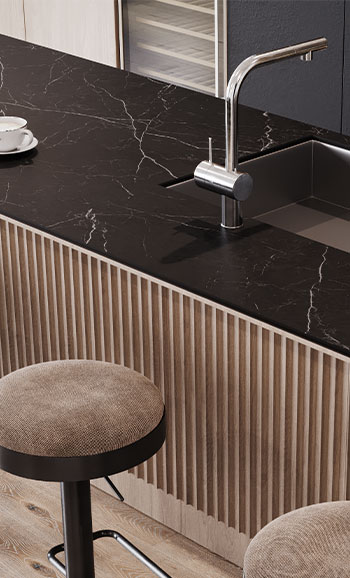 Selecting the right edge profile is an important consideration in the design process, as the surface design can sometimes differ from the actual body colour. We encourage you to view our Porcelain designs at your nearest Caesarstone showroom.