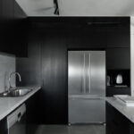 ShowroomsA contemporary, minimalistic kitchen that radiates warmth and drama, with its bold contrasts of smoothness-meets-texture further emphasized by clean, fresh lines.