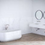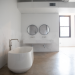 ShowroomsSwift Studios is a photography studio in the heart of New York City. This bathroom application features a floating vanity concept with 5151 Empira White as the splashback.
