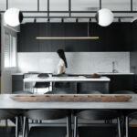 Modern U-shape kitchen with Island and table in Caesarstone 5143 White Attica | 2168