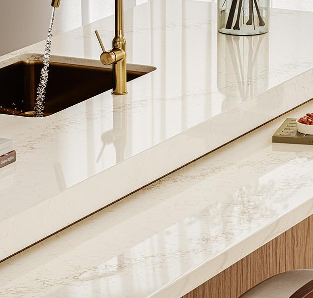 Golden veins ripple across a polished white base like shifting sands, adding subtle luxury to any space. Ideal for glamorous kitchen islands or bright splashbacks, Goldfinch enhances both minimal and classic interiors with its radiant, light-catching allure.