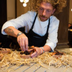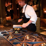 Sage smoke adds an aromatic note to the often disregarded cauliflower, crowned by roasting to achieve a nutty taste. Meanwhile, the sweet goat’s cheesecake, Torteau Fromager, elicits a delicate kiss of bitterness when lightly charred.